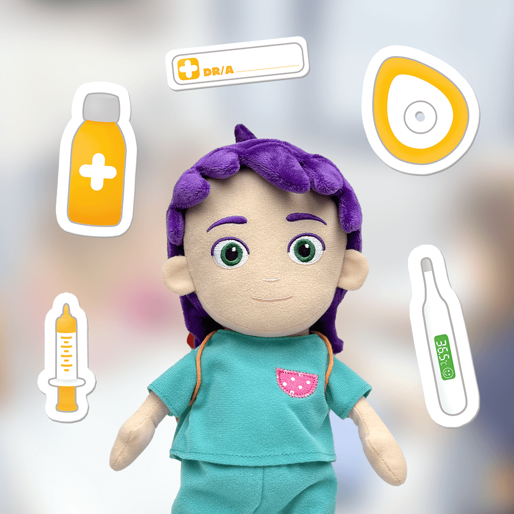The Nixi plush toy is the perfect tool for simulating hospital treatments. By doing so, your child is in control of the situation and playing with the plush toy while simultaneously putting themselves in the shoes of the professionals who will be treating them.